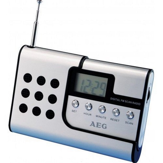 Карманная радиостанция FM AEG DRR 4107, доступная всего за 40 злотых, имеет съемный громкоговоритель, который можно использовать в качестве портативной радиостанции с наушниками после отсоединения. Встроенные часы. Цифровое FM-радио с алюминиевым корпусом. Динамик можно отключить, что позволяет использовать оборудование в качестве портативного радио с наушниками. Это FM-радио с автоматическим поиском станций. Имеет зажим для ремня или возможность установить его на подставку. Телескопическая антенна.